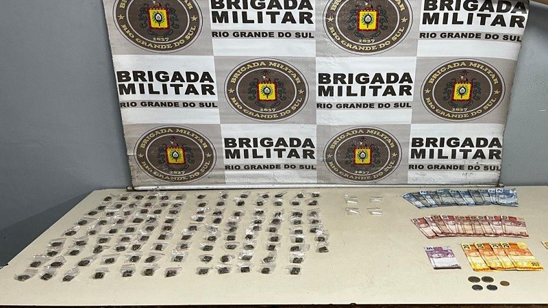 A Brigada Militar através do 1º Batalhão de Polícia de Choque realizou patrulhamento tático em apoio ao 19º Batalhão de Polícia Militar em local conhecido pelo comércio de entorpecentes, onde umas das equipes abordou um indivíduo, o qual durante busca pessoal foi encontrado uma quantia em moeda corrente e substâncias análogas maconha e cocaína. Sendo assim, foi lhe dado voz de prisão e encaminhado a 3ªDelegacia de Polícia de pronto atendimento para fins de registro policial. Foi necessário o uso da algema conforme decreto 8858/2016.
