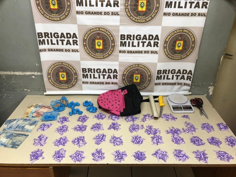 Com ela foi encontrado porções de cocaína, crack, uma balança e dinheiro.