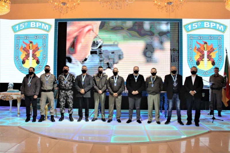 A solenidade contou com a presença do Comandante do Comando de Policiamento Metropolitano, Cel Alexandre da Rosa; Desembargador da Justiça Militar, Cel Paulo Roberto Mendes Rodrigues; Comandante do 3°Batalhão de Suprimentos de Nova Santa Rita, Cel Eduardo Rodrigues da Silva; Ex Comandantes do 15° BPM; Vice-prefeito de Canoas, Dr Nedy de Vargas Marques; Prefeito de Nova Santa Rita, Rodrigo Amadeu Batistella; Delegado da 2°Delegacia Regional Metropolitana, Delegado Mário Souza; Sr Jerri Bertoni, Presidente do Consepro; Policiais Militares e autoridades civis e militares.