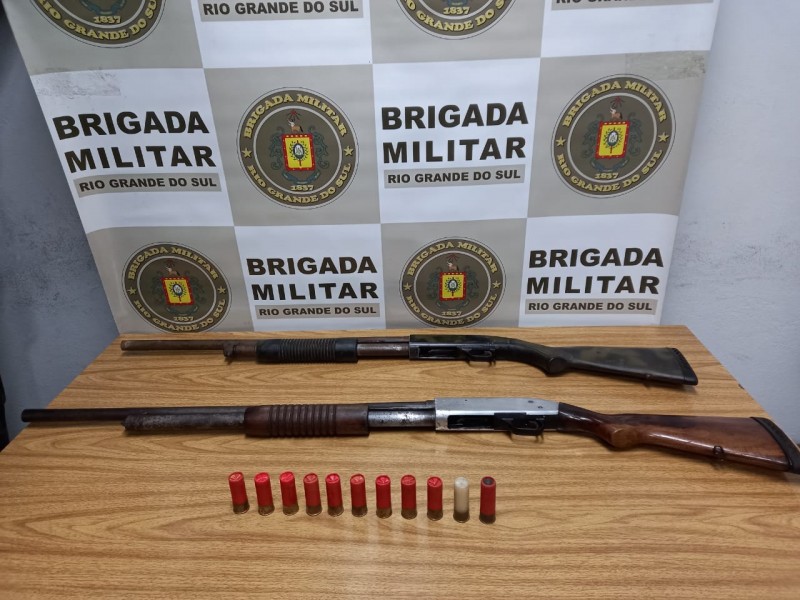Durante ações de repressão a criminalidade em Canoas, uma guarnição do 15º BPM localizou na Rua Tupi no bairro Igara, duas espingardas calibre 12 e 11 munições do mesmo calibre, um homem foi preso no local e encaminhado para Delegacia de Polícia para as medidas necessárias.