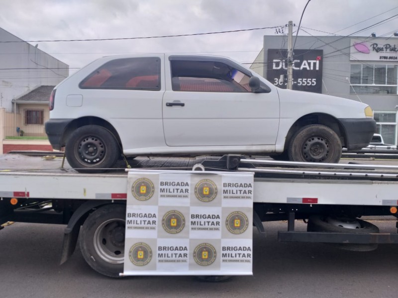 Durante patrulhamento pelo bairro Guajuviras, em Canoas, uma guarnição do 15º BPM recebeu a informação sobre um veículo Gol, de cor branca, que estava em ocorrência de furto, circulando pelo bairro.