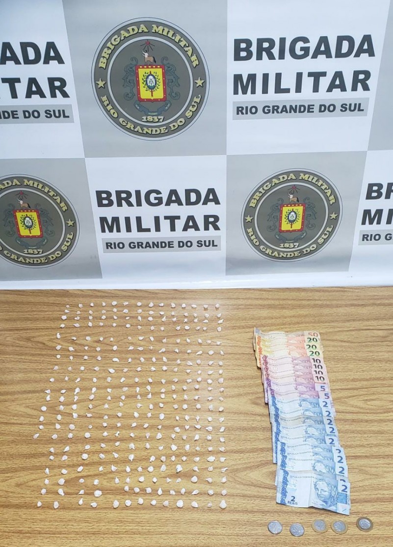 Durante a madrugada foi presa uma mulher no bairro Guajuviras, Canoas por tráfico de drogas. Em abordagem foi apreendido 68 pedras de crack e certa quantia em dinheiro.