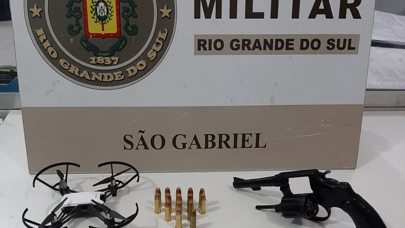 Foi encontrado com eles 14 munições, um revólver calibre 38, sem marca e numeração destituída, um drone, duas baterias, um carregador e 15 gramas de maconha.