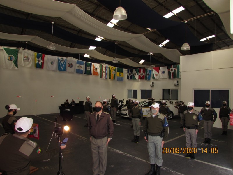 Na tarde de sexta-feira (21/08), na sede 23º BPM, em Santa Cruz do Sul, foi realizada a videoformatura alusiva ao 18° Aniversário do 23º BPM- Batalhão Major Sebastião, a qual contou com a presença virtual do Comandante-Geral da Brigada Militar, coronel Rodrigo Mohr Picon, Subcomandante-Geral da Brigada Militar, coronel Vanius Cesar Santarosa; a Chefe do Estado-Maior da Brigada Militar, coronel Cristine Rasbold e demais autoridades civis que prestigiaram o ato solene por videoconferência. Estiveram presencialmente na formatura, o coronel Valmir José dos Reis, Comandante Regional de Polícia Ostensiva do Vale do Rio Pardo, o Comandante 23º BPM- Batalhão Major Sebastião, tenente-coronel Giovani Paim Moresco e demais policiais militares que compuseram a guarda de honra.