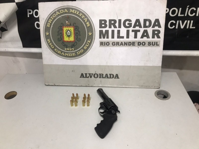 Chegando ao local, os policiais avistaram o indivíduo com as duas mãos no pescoço da vitima, ao conter o agressor, foi constatado uma arma de fogo em sua cintura. Diante dos fatos, o individuo foi preso em flagrante e conduzido até a DPPA de Alvorada para o devido registro.