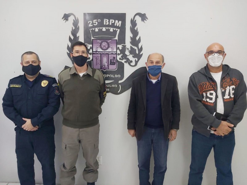 Na tarde de sexta-feira (18/6) em São Leopoldo, o Comandante do 25º Batalhão de Polícia Militar, Ten Cel Jacques Fernando Pires Peiter Ackermann, recebeu na sede a visita do Secretário de Segurança do Município, Sr Nestor Schwertner, do comandante da Guarda Municipal Sr Luis Carlos e do Sr Paulo Adriano Gonçalves Leite, Diretor de Políticas de Segurança Cidadã.