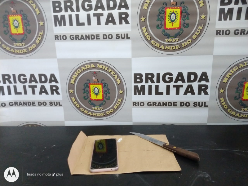 Durante policiamento ostensivo na rua Eduardo de Brito os Policiais foram acionados por uma mulher que os informou ter sido vítima de roubo, que o indivíduo subtraiu seu aparelho celular e que estaria portando uma faca. De posse das informações e características do indivíduo, os Policiais iniciaram as buscas obtendo êxito na prisão do indivíduo na rua Benjamin Constant. Com o indivíduo foi apreendido o aparelho celular da vítima e uma faca.