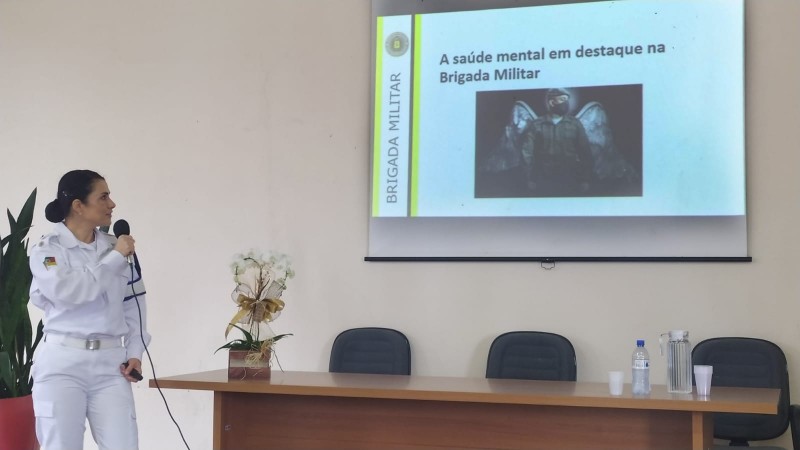 Na manhã desta quinta-feira (31/3), o Comandante do 37º Batalhão de Polícia Militar (37º BPM) Tenente Coronel Carlos Alberto Cardoso de Aguiar Jr, recepcionou a Médica Psiquiatra, Major Denise Alves Riambau Gomes, chefe da Seção Biopsicossocial da Brigada Militar, que explanou para o efetivo da unidade a importância da Saúde Mental.