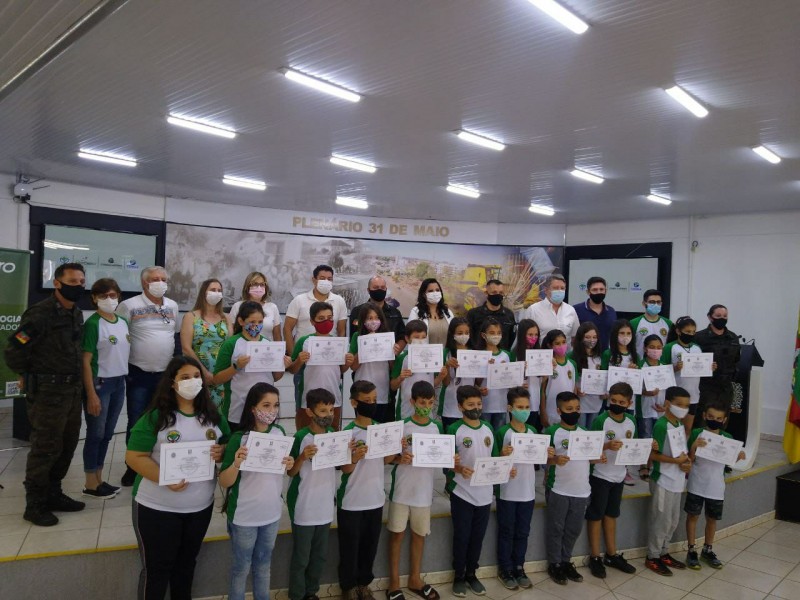 Formaram-se patrulheiros, os alunos do 4° ano fundamental da Escola Estadual de Ensino Médio Maria Dulcina, recebendo o certificado de Patrulheiros Ambientais Mirins. O projeto visa repassar conhecimentos de proteção e cuidados com o meio ambiente, criando boas práticas de proteção ao meio em que vivemos, sendo realizado em parceria com as empresas Simbalagens, Fenace e Barbiero Agronegócios.