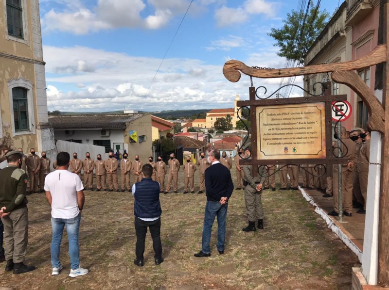 Na tarde de quarta-feira (9/6), os Alunos Soldados do Curso Básico de Formação Policial Militar do Polo de Ensino de Rio Pardo assistiram a uma aula do professor Fabio Augusto Wunderlich sobre a história da cidade de Rio Pardo e do surgimento de um dos pontos turísticos mais conhecidos, a Rua da Ladeira.