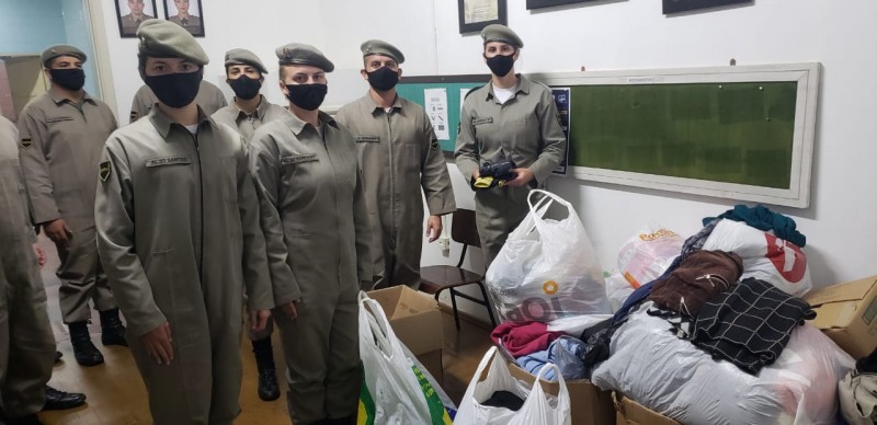 Alunos soldados do Polo de Ensino de Rio Pardo realizam doação de agasalhos