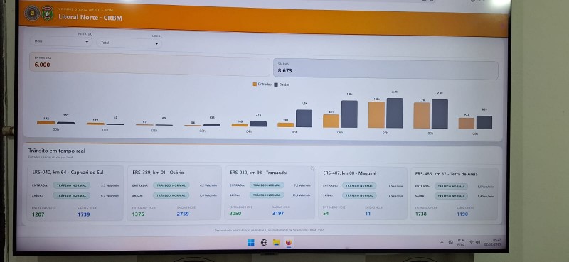 O sistema de monitoramento de Volume Diário Médio (VDM) foi desenvolvido pelo CRBM. A inovação traz grande benefício aos cidadãos ao contribuir para a melhoria da fluidez no trânsito, explica a major PM Marta França Moreira, coordenadora da 56ª Operação Golfinho do CRBM – Litoral Norte. Segundo ela, trata-se de um serviço de utilidade pública que pode influenciar na tomada de decisão dos condutores, que passam a dispor de informações, em tempo real, sobre as condições de tráfego — se “normal, intenso ou saturado” —, permitindo avaliar o melhor momento de ingressar ou sair do Litoral Gaúcho.
