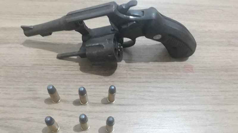 Durante ações de polícia ostensiva, a viatura policial foi abordada por um homem, o qual informou aos policiais que havia sido atingido na nuca por uma coronhada de um revólver. Em seguida, os policiais militares se depararam em via pública com quatro homens, os quais fugiram adentrando numa residência ao perceberem a aproximação dos policiais. Um dos abordados jogou um objeto para atrás da geladeira. O objeto lançado era um revólver calibre. 32, com numeração raspada e seis munições, cinco delas intactas e uma percutida.