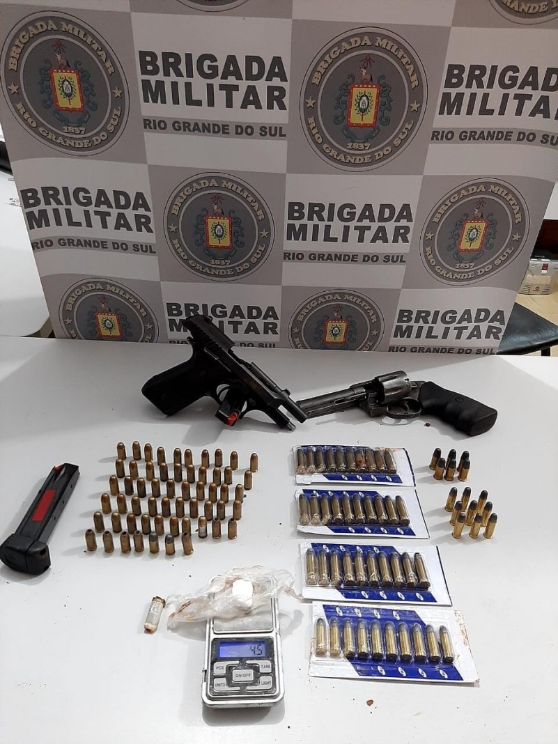 Na noite de terça-feira (12/5), às 23h50, a Brigada Militar de Cachoeira do Sul, prendeu dois homens, 24 e 27 anos, por porte ilegal de arma de fogo de uso permitido e posse de entorpecente, na Estrada Geral de Santana, interior do município.