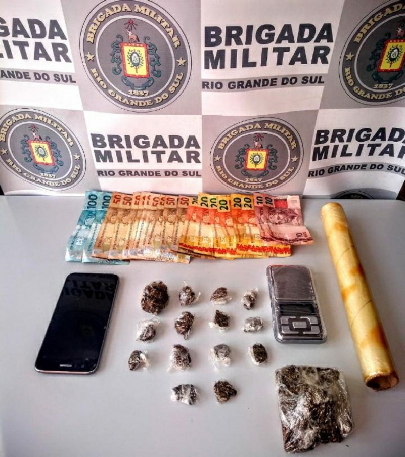 Na tarde de segunda-feira (08/2), às 17h00, a Brigada Militar de Cachoeira do Sul prendeu um jovem, de 22 anos, por tráfico de drogas no bairro Gonçalves. Após denúncia de tráfico de drogas na região, os policiais militares foram até o local e abordaram um indivíduo em atitude suspeita. Em revista pessoal, foram encontrados um tablete de maconha, pesando 74,5 gramas e um aparelho celular. Ainda, durante diligências, foram localizadas 14 porções de maconha, pesando 25,3 gramas, além de uma balança digital, um rolo de plástico filme e a quantia de R$ 790,00. Diante dos fatos, foi dada voz de prisão ao jovem, que foi apresentado, com os materiais apreendidos, na Delegacia de Pronto Atendimento, onde foi autuado em flagrante e, posteriormente, encaminhado ao Presídio Estadual de Cachoeira do Sul.