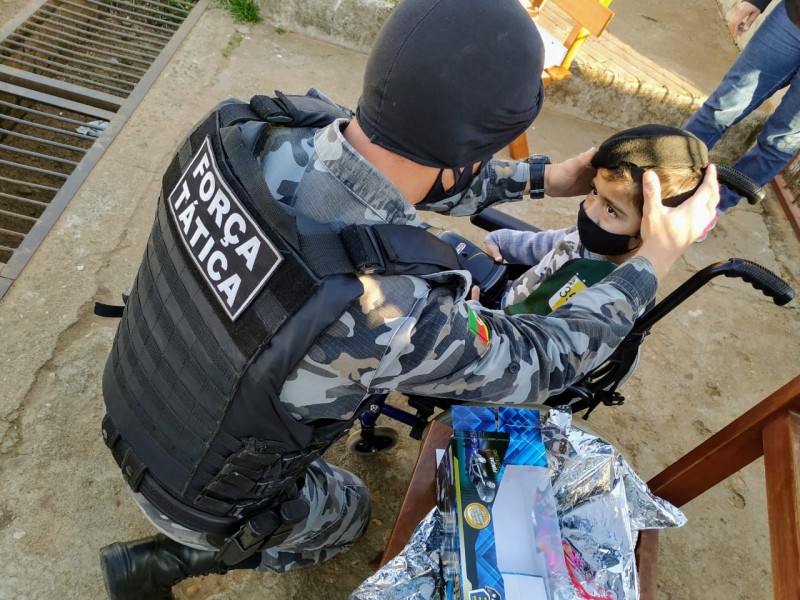 Na tarde desta quarta-feira (29/7), a Brigada Militar de Cachoeira do Sul realizou uma surpresa de aniversário para o menino Conrado, que completou 5 anos na data de hoje. Conrado é admirador da Brigada Militar e morador do Bairro Tibiriçá. Uma amiga da família, sabendo dessa admiração, entrou em contato com a Instituição, para viabilizar uma surpresa ao menino que, de pronto, foi autorizada pelo comandante.