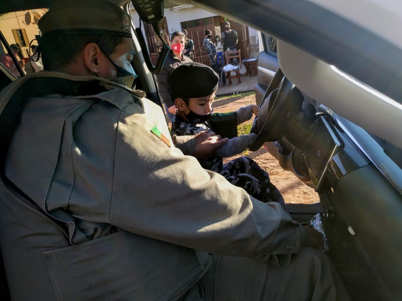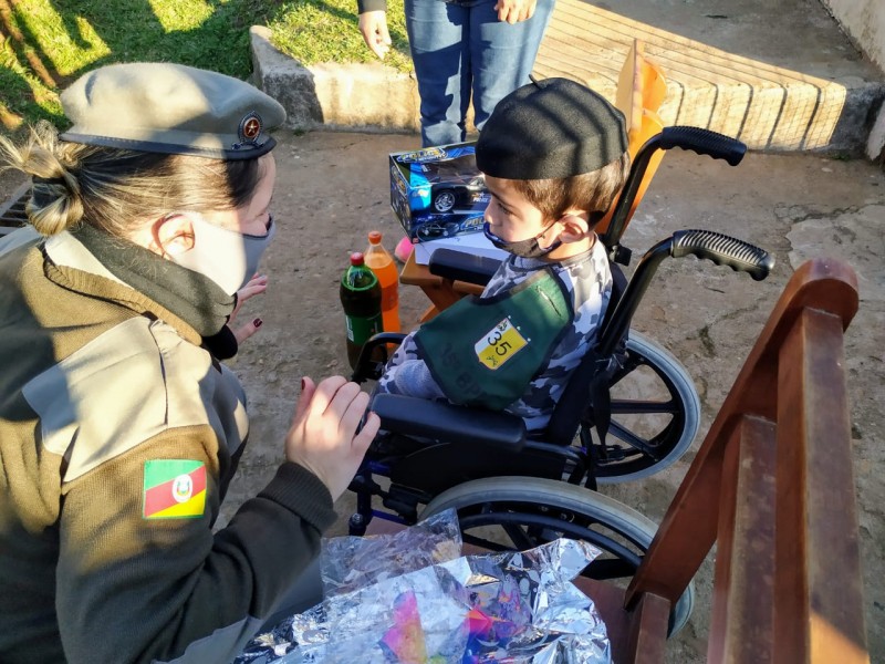 Desse modo, os policiais militares compraram um bolo, salgados, refrigerante e presente para o aniversariante. A viatura chegou na casa do garoto com sirenes e giroflash ligados, fazendo a alegria do pequeno. A admiração que Conrado sente pela Instituição ficou estampada em seus olhos, no momento em que viu as viaturas e os policiais militares chegarem em sua casa. Além dos presentes, o pequeno pôde entrar no carro da Brigada Militar e ganhou um bracelete do 35º BPM.