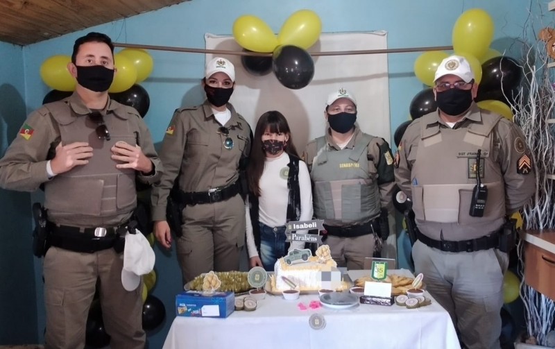 Na tarde de sábado (29/5), a Brigada Militar de Cachoeira do Sul realizou uma surpresa de aniversário para Isabeli Freitas Schmitt, que completou 12 anos.