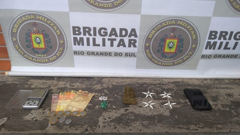 Em patrulhamento no bairro Liberdade, os policiais abordaram os dois indivíduos. Durante a abordagem foram localizados 19 pinos de cocaína, uma porção de maconha, 25 pedras de crack, uma balança de precisão e R$ 102,00 em dinheiro.