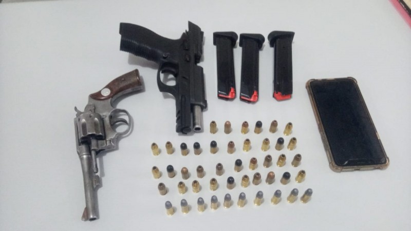 A guarnição deslocou em apoio à Polícia Civil, após solicitação, para verificar denúncia de dois indivíduos armados no local. Os policiais visualizaram os indivíduos com as características informadas, que levavam consigo uma mochila, e procederam a abordagem, porém, um deles conseguiu fugir, dispensando a mochila. Na ação, foram aprendidas uma pistola Taurus calibre 380, um revólver Taurus calibre 32, 36 munições calibre 380 intactas, 10 munições calibre 32 intactas, três carregadores de pistola Taurus e um celular.