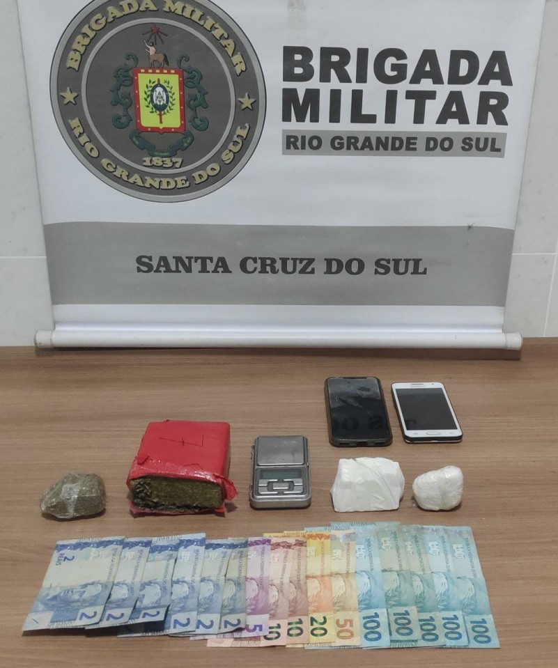 Durante ações de polícia ostensiva, próximo a um local conhecido pela traficância de drogas, policiais visualizaram dois homens defronte a um estabelecimento comercial. Esse local estava com a porta entreaberta, despertando nos policiais o alerta de um possível furto. Foi realizada a abordagem dos homens que estavam no local, sendo encontrado com o homem de 40 anos o valor de R$ 607,00, e no entorno da abordagem foi localizada a droga, a qual estava enrolada em uma jaqueta. Foram 400 gramas de maconha, 107,5 gramas de cocaína, dois celulares Samsung e uma balança de precisão apreendidos.