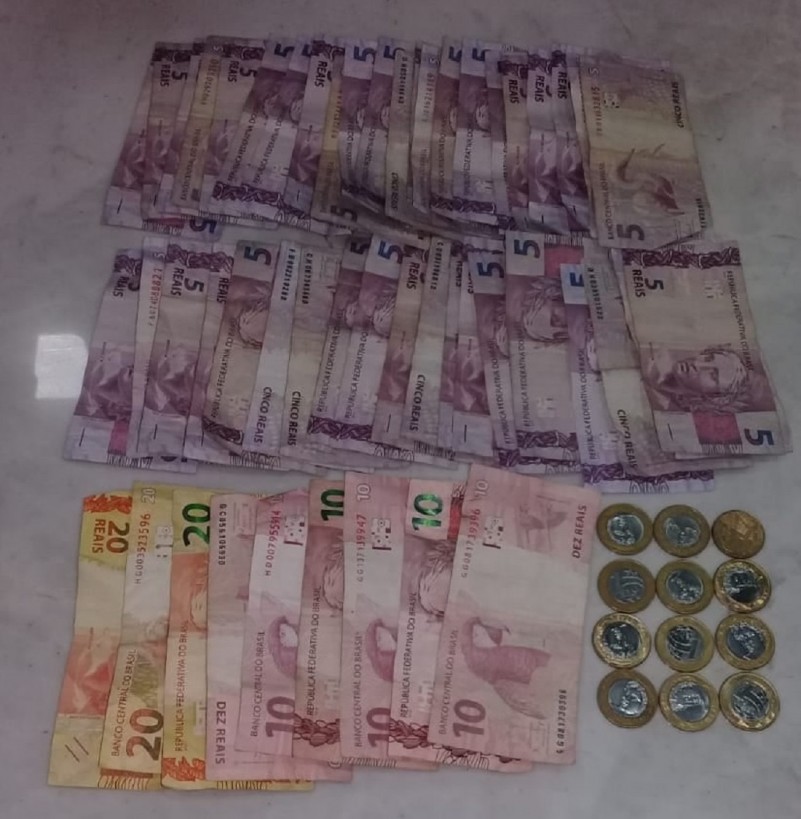 Abordado, em revista pessoal, foi encontrada a quantia informada que teria sido roubada do local.