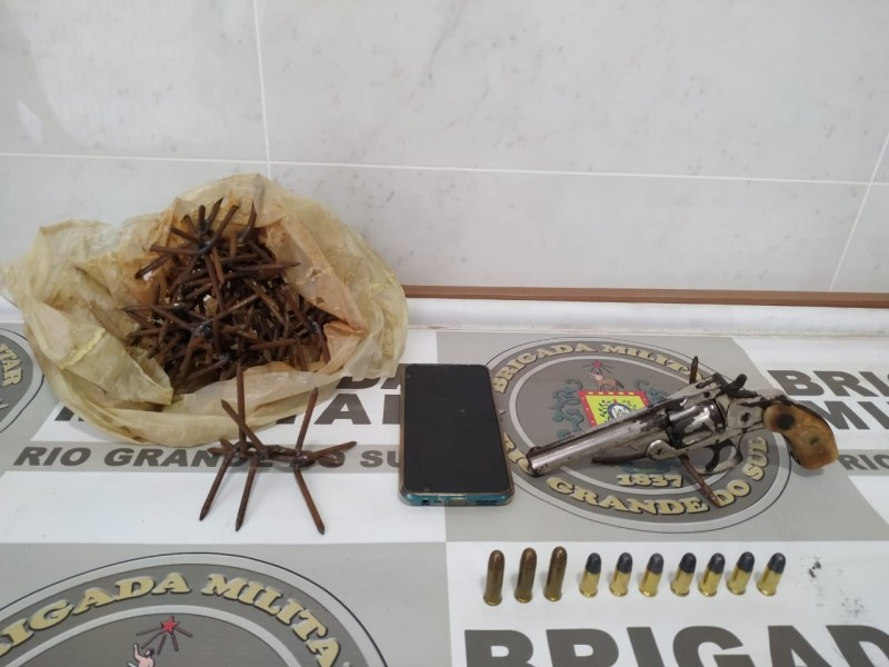 Os indivíduos que estavam no automóvel, ao perceberem a aproximação da viatura, tentaram fugir, mas logo foram abordados e identificados. Durante a revista, foi localizada uma sacola com miguelitos, um revólver calibre .38 e dez munições do mesmo calibre. O veículo apresentava uma adulteração na placa, que não conferia com a chassi e estava em situação de roubo desde setembro deste ano, ocorrido no município de Lajeado.
