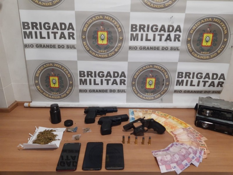 Após ações de polícia ostensiva, policiais militares flagraram uma mulher comercializando entorpecentes. Durante buscas no local da flagrância foram encontrados um revólver marca Rossi com cinco munições intactas e com numeração suprimida, um pote com maconha a granel, dois simulacros de arma de fogo, a quantia de 605 reais em dinheiro, três aparelhos celulares e um caderno com anotações referente ao tráfico de entorpecentes. Diante dos fatos, foi dada voz de prisão e encaminhada à Delegacia de Polícia.