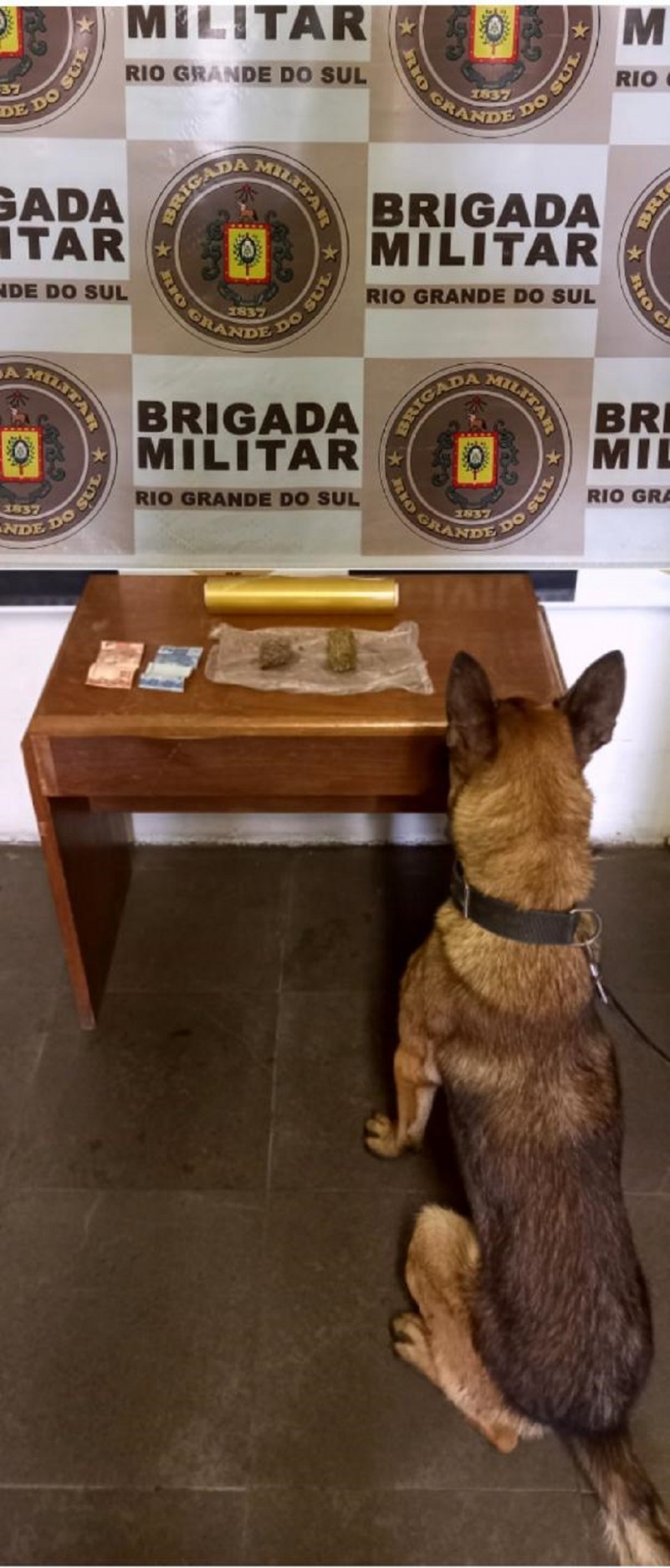 Segundo as informações, teria mais drogas enterradas em um terreno logo a frente e com o apoio de uma guarnição do Canil, os policiais empregaram o cão Rex o qual localizou mais 85 gramas de maconha.