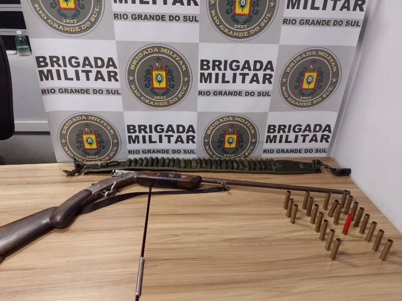 Ao chegar ao local, foi encontrada uma espingarda calibre 36, uma cartucheira, doze munições calibre 36 deflagradas e dez munições calibre 36 recarregadas. Diante disto, o material foi apreendido.