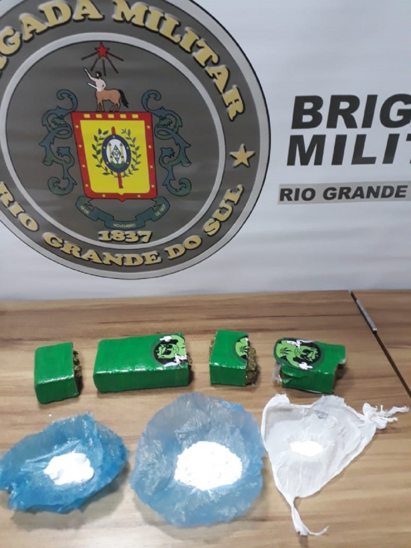 Durante o patrulhamento ostensivo, os policiais militares visualizaram o jovem em atitude suspeita, em local conhecido por envolvimento com tráfico de drogas, e procederam abordagem. Durante diligências, foram apreendidos 4 tijolos de maconha, pesando 1,014kg , 3 buchas de cocaína, pesando 35 gramas e um celular.
