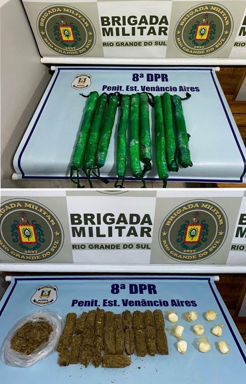 Na madrugada de quarta-feira (12/5), às 2h20, a Brigada Militar de Venâncio Aires, através da guarda externa da Penitenciária Estadual de Venâncio Aires, realizada por policiais militares, apreendeu grande quantidade de drogas.