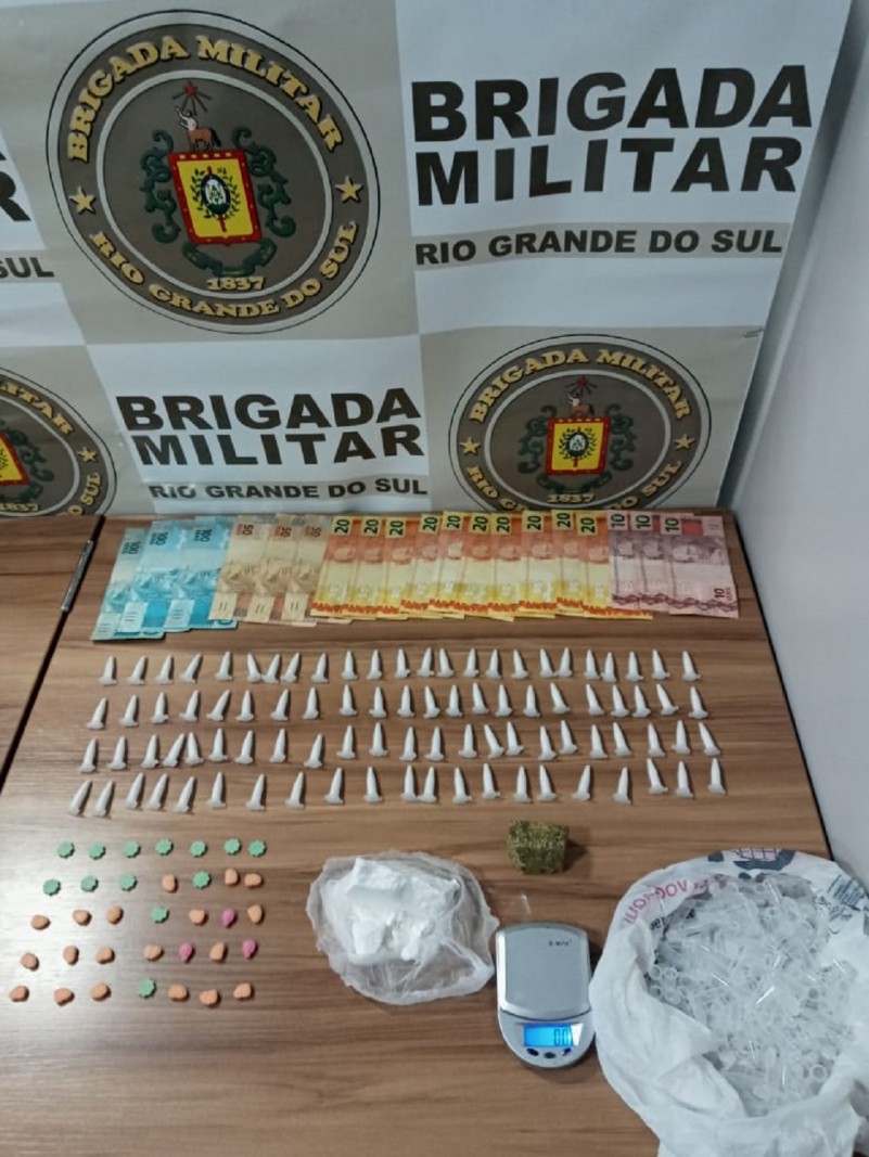 Diante da circunstância, o homem recebeu voz de prisão e o adolescente apreendido em flagrante. Eles, juntamente com o usuário e materiais apreendidos, foram apresentados na Delegacia de Pronto Atendimento, onde foi lavrada a prisão em flagrante do jovem de 25 anos, que em seguida foi encaminhado a Penitenciária Estadual de Venâncio Aires. O adolescente foi entregue ao responsável legal, e o usuário foi ouvido e liberado. Foram apreendidos: 97 gramas de cocaína, 84 pinos de cocaína totalizando 70 gramas, 4,7 gramas em 06 pinos de cocaína, 20 gramas de Maconha, 15,2 gramas em 35 balas de ecstasy, uma balança de precisão, dois celulares e R$ 680,00.