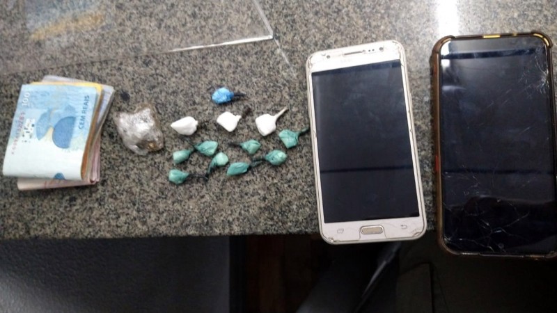 Durante patrulhamento na avenida 20 de Setembro, no bairro Vôo Livre, a guarnição abordou a motocicleta Honda/CG125-FAN, de cor vermelha, tripulada por dois indivíduos, onde na revista pessoal foi localizado e apreendido R$464,00 em dinheiro, 12 porções de cocaína, uma porção de maconha e dois celulares.