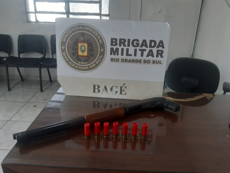 Na tarde desse domingo (05/02), a Brigada Militar da cidade de Bagé apreendeu uma arma de fogo, após a sala de operações receber uma ligação informando sobre uma ocorrência de violência doméstica, onde uma parte feminina havia sido agredida por seu companheiro e ameaçada com uma arma de fogo, as guarnições de serviço deslocaram até a residência informada, onde fizeram contato com a vítima que estava lesionada e ao fazer averiguação localizaram uma espingarda calibre 12, municiada com 07 cartuchos intactos. O autor não foi localizado. A vítima foi encaminhada à delegacia para registro e a arma foi apreendida.