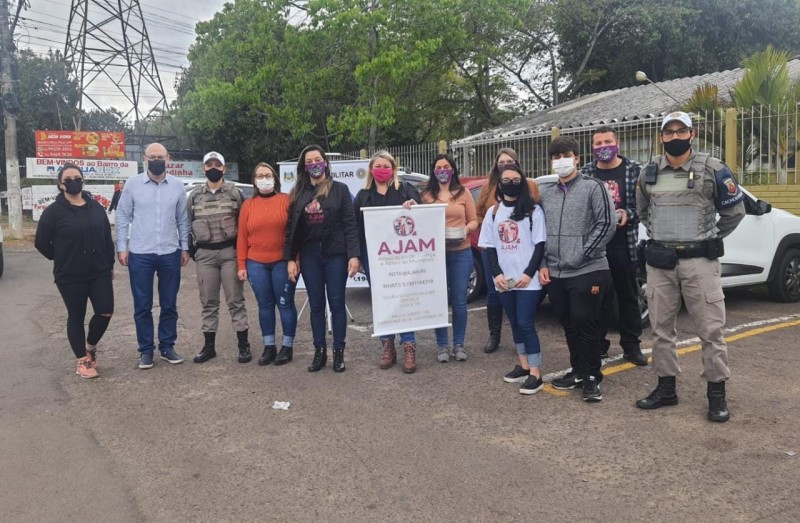 A ação, que consistiu na realização de barreira de conscientização com a distribuição de materiais informativos, foi desenvolvida pela Patrulha Maria da Penha do 26º BPM e pela Associação de Justiça e Apoio às Mulheres - AJAM, além de ter contado com a presença do Prefeito Municipal, Miki Breier e da Secretária Municipal, Cristiana Mesquita. Na oportunidade foi realizada a entrega de folders informativos acerca do tema e, ainda, a distribuição de plantas disponibilizadas pelo Horto Florestal Chico Mendes.