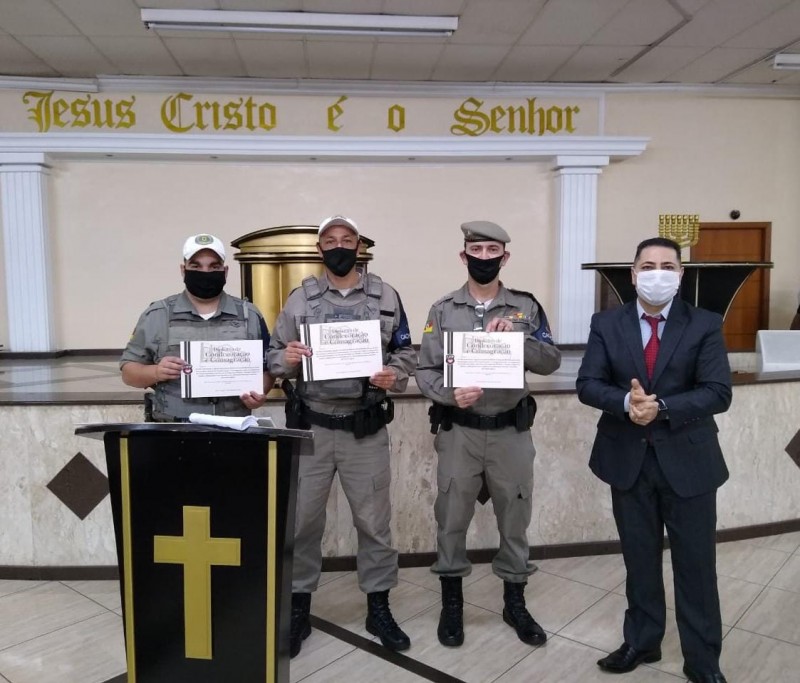 Durante a homenagem, os policiais militares foram homenageados pelo Pastor Alexsandro e agraciados com Diploma de Condecoração e Consagração, pela valorização humana instituída pelo trabalho junto à comunidade de Cachoeirinha.