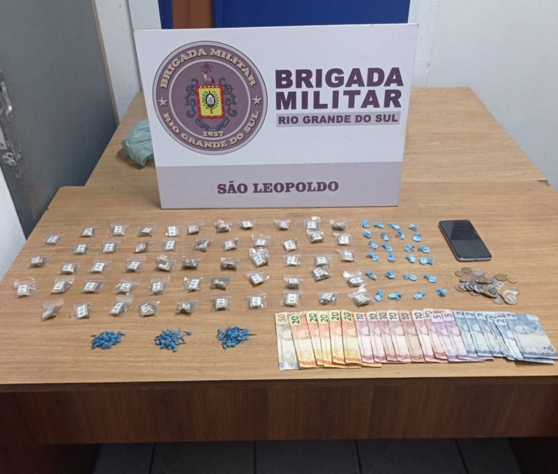 Na noite de sábado (15/5), em São Leopoldo, policiais do 25º Batalhão de Polícia Militar efetuaram a prisão de um homem de 25 anos por tráfico de drogas no bairro Santos Dumont.