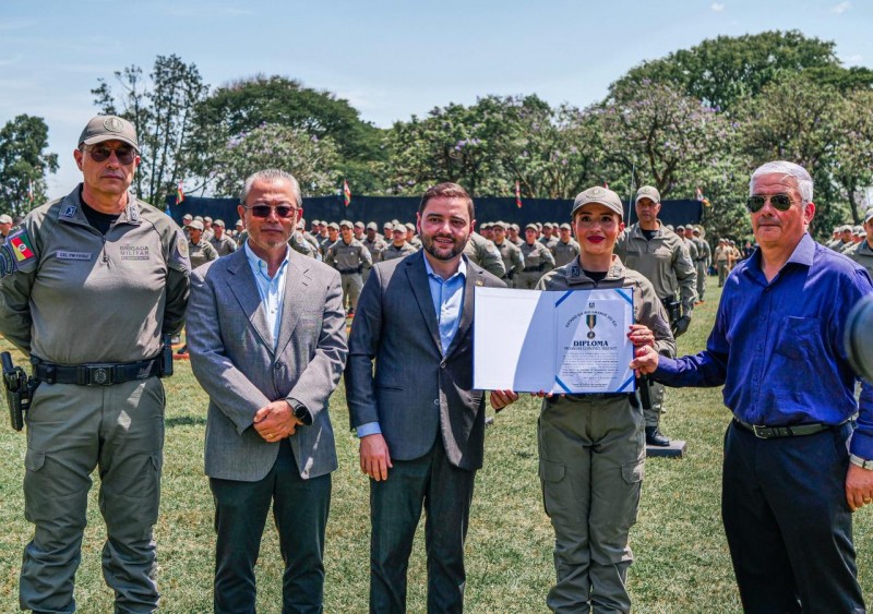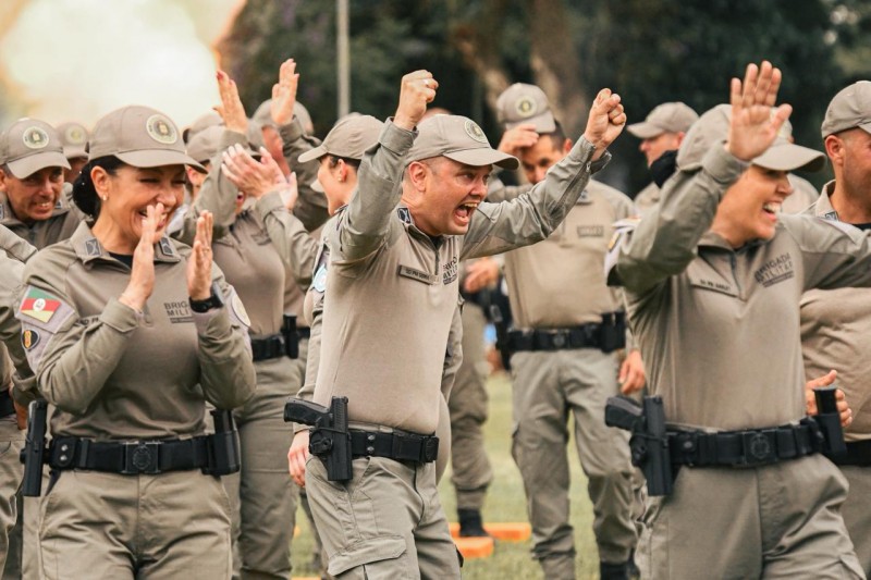 A solenidade foi realizada na manhã desta sexta-feira (28/11), no campo do Estádio General Cypriano da Academia de Polícia de Porto Alegre. O vice-governador Gabriel Souza prestigiou o evento ao lado do secretário estadual de Segurança Pública, Mário Ikeda, do comandante-geral da Brigada Militar, Coronel PM Cláudio dos Santos Feoli, do subcomandante-geral da Brigada Militar, Coronel PM Douglas da Rosa Soares, do Chefe do Estado-Maior da Brigada Militar, Coronel PM Luigi Gustavo Soares Pereira, e das demais autoridades militares e civis, familiares e amigos dos formandos.