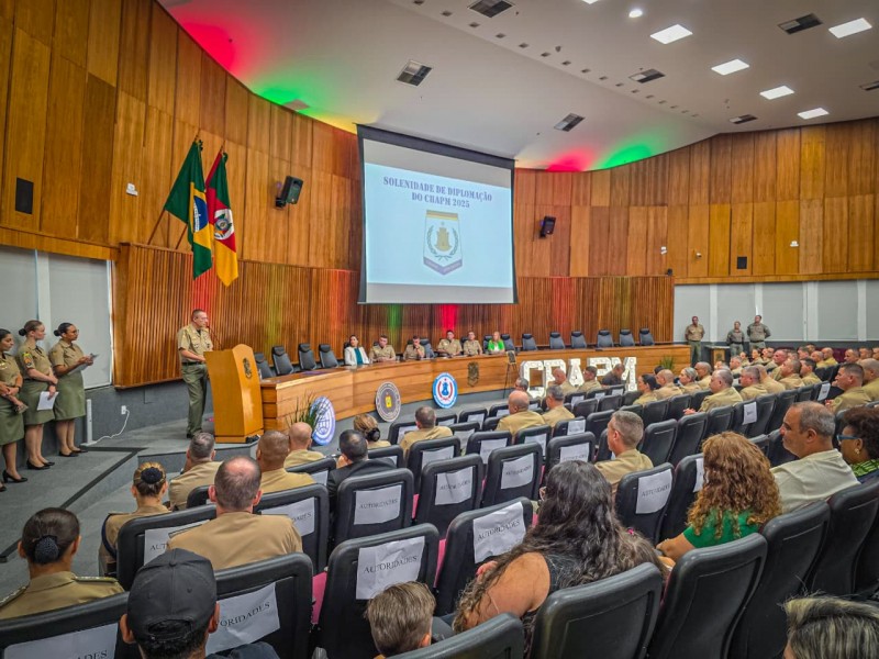 A Brigada Militar realizou, na manhã desta quinta-feira (11/12), a solenidade de conclusão do Curso Básico de Administração Policial Militar (CBAPM) 2025, que marcou o encerramento da formação de 49 sargentos habilitados à ascensão ao posto de tenente. O evento ocorreu no auditório do Ministério Público, na Avenida Aureliano de Figueiredo Pinto, no bairro Praia de Belas, em Porto Alegre. O curso foi realizado entre 7 de julho e 28 de novembro de 2025, totalizando 952 horas-aula de qualificação e aprimoramento. A capacitação foi supervisionada pelo Departamento de Ensino e coordenada e executada pela Academia de Polícia Militar de Porto Alegre.