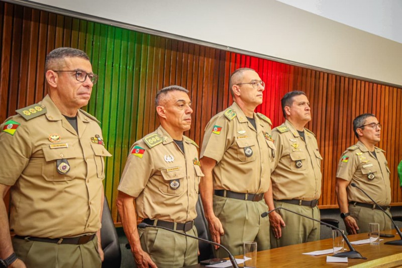 Entre as autoridades presentes estavam o comandante-geral da Brigada Militar, coronel PM Cláudio dos Santos Feoli, que recebeu honras militares de recepção; o subcomandante-geral da Brigada Militar, coronel PM Douglas da Rosa Soares; o chefe do Estado-Maior, coronel PM Luigi Gustavo Soares Pereira; o diretor do Departamento de Ensino, coronel PM Jorge Dirceu Abreu Silva Filho; e o comandante da Academia de Polícia Militar, tenente-coronel PM Rafael Assis Brasil Ramos Aro.