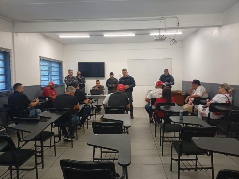 A Brigada Militar realiza reuniões com as lideranças das torcidas dos clubes de futebol para alinhar as questões atinentes à preservação da ordem pública nos dias dos jogos. As lideranças da torcida do Sport Club Internacional, estiveram na sede do 1º BPChq em Porto Alegre, na tarde da última terça-feira (20/01) e, as lideranças da torcida do Grêmio Foot-Ball Porto Alegrense, na tarde da última quinta-feira (22/01).