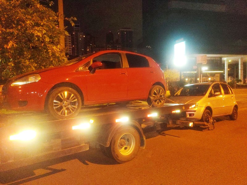 Após buscas os policiais abordaram dois homens que saiam de uma garagem e entravam em um Fiat Ideia. Com eles foi encontrado a chave do Fiat Punto e na garagem o veículo Punto. Em verificação dos sinais identificadores constatou se tratar do automóvel furtado/roubado. Também foi apreendido na garagem um par de placas, uma máquina de contar cédulas e três coldres.