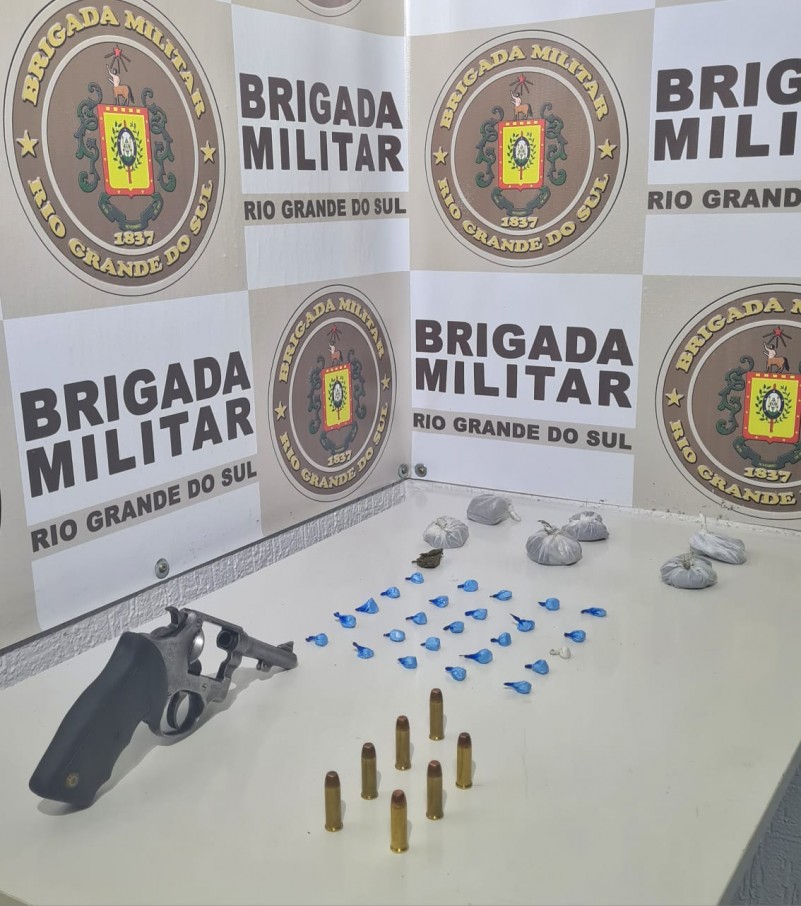 O rapaz, apontado por denúncias de tráfico de drogas, possuía 25 porções de cocaína (12g) e 07 porções de maconha (82g) prontas para a comercialização. Os policiais em maiores diligências, localizaram também 01 revólver Cal. 38 em situação de furto e 07 munições intactas do mesmo calibre.