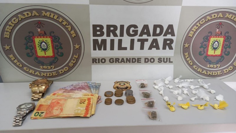 Na noite de quinta-feira (13) a guarnição avistou o indivíduo em atitude suspeita em área conhecida pela pratica do tráfico de drogas, e realizando abordagem no homem de 29 anos, foi apreendido 26 porções de maconha, 36 porções de cocaína e o valor de 28,50 reais.