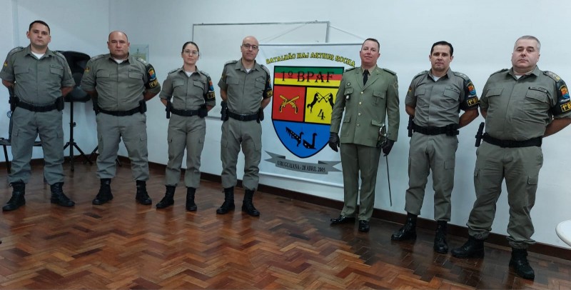 Na segunda-feira (06/02) o comandante do 1° BPAF na cidade de Uruguaiana junto com seus oficiais recepcionaram o 1º Ten QTPM DIOGENES RODRIGO MROZINSKI, o qual recentemente foi designado para fazer parte do efetivo deste Batalhão.