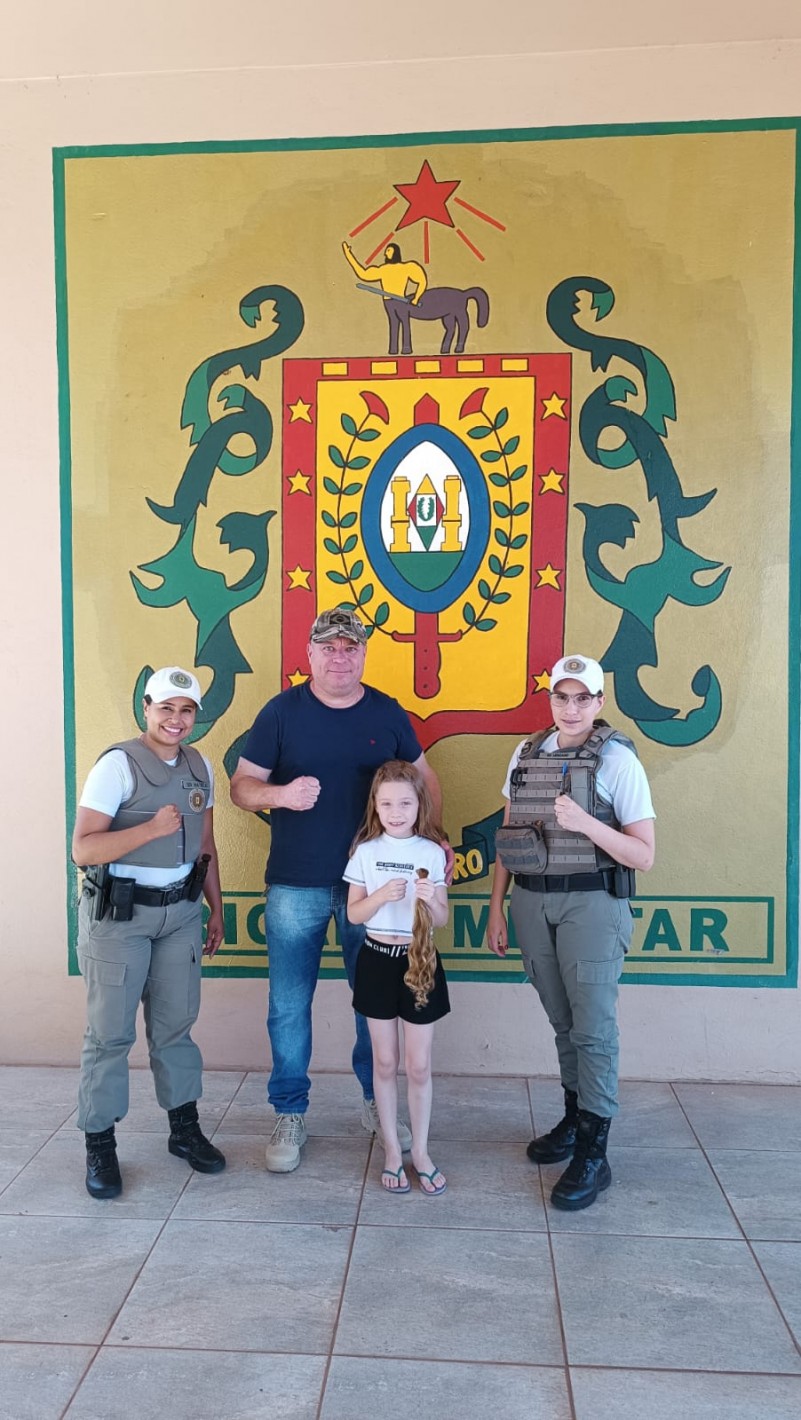 Isabela, estava na companhia de seu pai e foram recepcionados pelas Soldados Natiele e Lescano, pai e filha fizeram questão de comparecer na sede do 2º BPAF para realizar a doação.