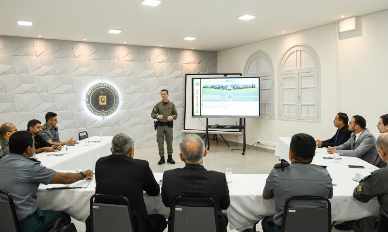 O comandante-geral da Brigada Militar, Coronel PM Luigi Gustavo Soares Pereira, ao lado do chefe do Estado-Maior, Coronel PM Álvaro Martinelli, recebeu a visita técnica da Comitiva do Estado do Maranhão, nesta quarta-feira (11/03), na sede do Comando-Geral, em Porto Alegre.