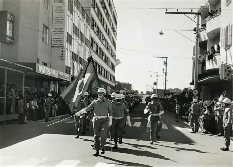 Nesta foto, ano de 1973, desfile no centro de Canoas do Pelotão da 3º Companhia do 3º Batalhão de Polícia Militar de Novo Hamburgo.ponsável pelo policiamento em Canoas naquela época. Em 1982 foi criado o 15º BPM, com sede em Canoas, onde passou a comandar a cidade.