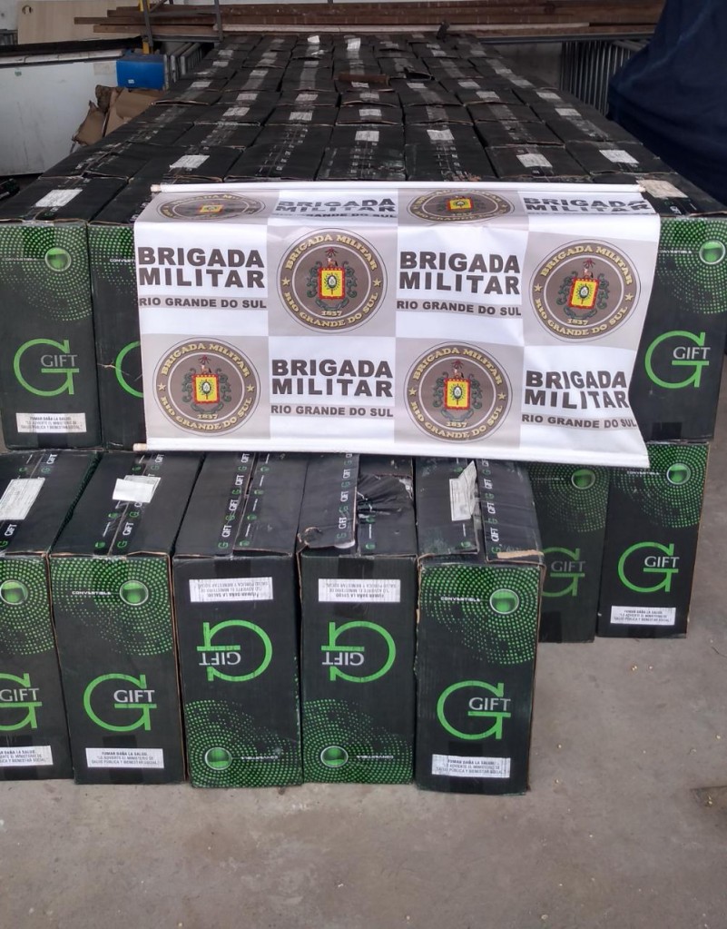 Durante uma barreira policial na RS 377, km 15 localidade do Garupá, os policiais abordaram um veículo caminhão e durante a revista na carroceria, encontraram 173 caixas de cigarros da marca Gift, contendo 50 pacotes com 10 maços cada caixa, totalizando 86.500 maços de cigarros.